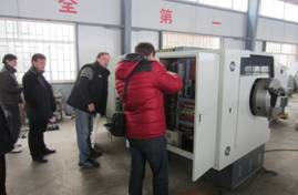 February 28, 2013, the Russian businessmen delegation of four people to the acceptance of the order before the Spring Festival of CNC pipe thread lathe. Merchants after a closer look at the product, start running, hands-on and sample processing and other sectors, successfully passed the acceptance. Expressed satisfaction with the overall product, programming, operation and sample processing technical training in the company.