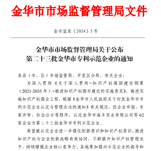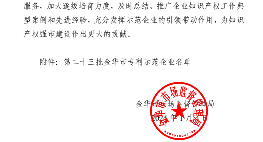近(jìn)日,經(jīng)金華市市政府(fǔ)批準,金華市市場監督管理局公布了2023年(nián)金華市專利示範(fàn)企業(yè)認定結果,綜合考量企業知識(shí)產權創造質量、運(yùn)用效益、保護效果和管理效(xiào)能(néng),我司 “浙江绿巨人草莓丝瓜樱桃秋葵榴莲污免费版股份有限公司”入選金華市專利示範企業。